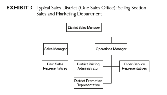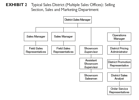 Stanamer’s sales force sold exclusively through wholesale plumbing and heating distributors. The 250-person force called upon 1,400 wholesalers, who, in turn, sold through 50,000 contractors and plumbers. Sales personnel worked out of twenty-three sales offices located in some but not all of thirteen sales districts. (See Exhibits 2, 3, and 4 for the organizations of the various types of typical sales districts.)
