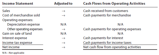 Under the direct method, the income statement is adjusted to cash flows from operating activities as follows: