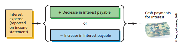 The income statement (from Exhibit 3) for Rundell Inc. reports interest expense of $8,000. To determine the cash payments for interest, the $8,000 is adjusted for any increases or decreases in interest payable. The adjustment is summarized as follows: