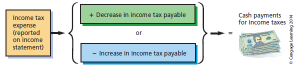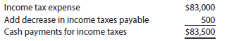 The income statement (from Exhibit 3) for Rundell Inc. reports income tax expense of $83,000. To determine the cash payments for income taxes, the $83,000 is adjusted for any increases or decreases in income taxes payable. The adjustment is summarized below.