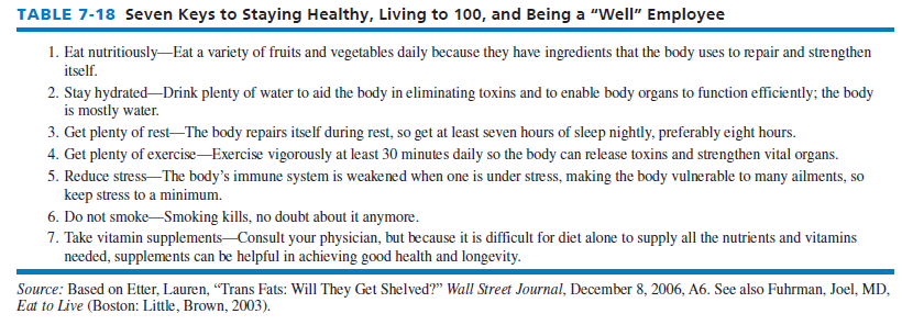 Seven key lifestyle habits listed in Table 7-18 may significantly improve health and longevity.