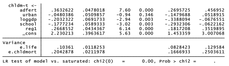 . sem (life <- adfert urban loggdp chldmort school regl)