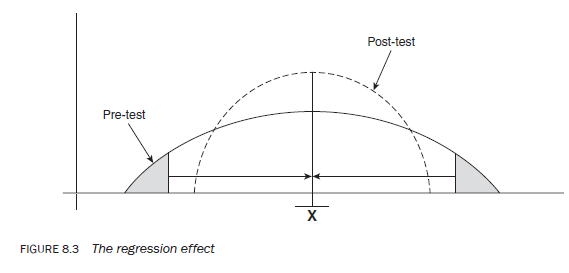 - another disadvantage that may occur when you use a research instrument twice to gauge the attitude of a population towards an issue is a possible shift in attitude between the two points of data collection. sometimes people who place themselves at the extreme positions of a measurement scale at the pre-test stage may, for a number of reasons, shift towards the mean at the post-test stage (see Figure 8.3). They might feel that they have been too negative or too positive at the pre-test stage. Therefore, the mere expression of an attitude in response to a questionnaire or interview has caused them to think about and alter their attitude at the time of the post-test. This type of effect is known as the regression effect.