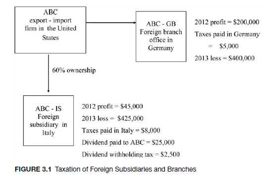An export-import firm may enter a foreign market by establishing a branch in a foreign country. Branches are often used to retain exclusive control of overseas operations or to deduct losses on initial overseas activities. However, they can be incorporated abroad when such operations become profitable to enable the firm to defer any U.S. income taxes owed on profits until they are remitted to the United States. A branch is not a separate corporation; it is considered an extension of the domestic corporation. One of the major disadvantages of operating a branch is that it exposes the domestic firm to liability in a foreign country. Foreign branch taxes are paid when they are earned (not when remitted to the United States, as in the case of a foreign corporation), and losses are reported when incurred. Foreign taxes paid or accrued on branch profits are eligible for foreign tax credits (Figure 3.1).