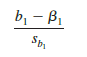 follows a t distribution with n – 2 degrees of freedom. If the null hypothesis is true, then b1 = 0 and t = b1/sb.
