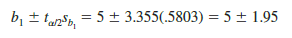 The point estimator is b1 and the margin of error is ta/2sb. The confidence coefficient associated with this interval is 1 – a, and ta/2 is the t value providing an area of a/2 in the upper tail of a t distribution with n – 2 degrees of freedom. For example, suppose that we wanted to develop a 99% confidence interval estimate of b1 for Armand’s Pizza Parlors. From Table 2 of Appendix B we find that the t value corresponding to a = .01 and n – 2 = 10 – 2 = 8 degrees of freedom is t.005 = 3.355. Thus, the 99% confidence interval estimate of β1 is