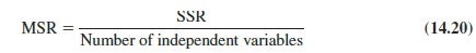 Because we consider only regression models with one independent variable in this chapter, we have MSR = SSR/1 = SSR. Hence, for Armand’s Pizza Parlors, MSR = SSR = 14,200.