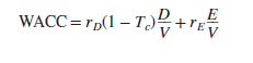 Here D and E are the market values of the firm’s debt and equity, V = D + E is the total market value of the firm, rD and rE are the costs of debt and equity, respectively, and Tc is the marginal corporate tax rate.