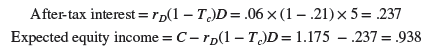 When estimating the weighted-average cost of capital, you are not interested in past investments but in current values and expectations for the future. Sangria’s true debt ratio is not 50%, the book ratio, but 40% because its assets are worth $1,250 million. The cost of equity, rE = .125, is the expected rate of return from purchase of stock at $7.50 per share, the current market price. It is not the return on book value per share. You can’t buy shares in Sangria for $5 anymore.