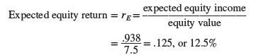 The project’s earnings are level and perpetual, so the expected rate of return on equity is equal to the expected equity income divided by the equity value: