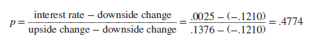 We can check that if there is a 47.74% chance of a rise of 13.76% and a 52.26% chance of a fall of 12.10%, then the expected return must be equal to the .25% risk-free rate: