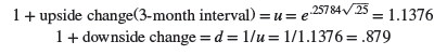 To work out the equivalent upside and downside changes when we divide the period into two three-month intervals (h = .25), we use the same formula: