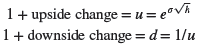 To work out the equivalent upside and downside changes when we divide the period into two three-month intervals (h = .25), we use the same formula: