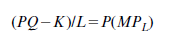 P is product price, Q is output, K is the charge on capital, MPL is the marginal product of labour, and L is the labour force. The term on the left-hand side is the surplus per worker. On the right is the value of the marginal product of labour. An increase of ten per cent in product price will increase the value of the marginal product of labour by ten per cent in competitive conditions. It will also increase total revenue per worker (PQ/L) by ten per cent. Capital charges per worker (K/L) will remain unchanged, however, which implies that the distributable surplus per worker will rise by more than ten per cent. With the value of the marginal product of labour now below the surplus per worker, there will be an incentive to reduce the size of the team in the face of an increase in demand for its product.