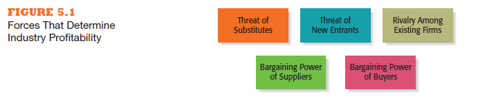 The five competitive forces that determine industry profitability are described next. As mentioned in previous chapters, industry reports, produced by companies such as IBISWorld, Mintel, and Standard & Poor’s NetAdvantage, provide substantive information for analyzing the impact of the five forces on specific industries. All three of these resources are available free through many university library websites and are highlighted in the Internet Resources Table in Appendix 3.2.