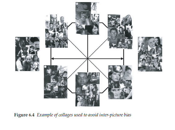 The use of pictorial stimuli is fraught with difficulties. It is often the case that variations between pictures, other than those intended, bias the responses as people react to these differences rather than those the questionnaire writer wishes them to. Figure 6.4 shows the solution to this adopted by NFO Worldgroup, which uses a series of collages of people of different age, gender and race to depict each of these emotions. A more recent approach to this issue (Wood, 2007) has been the use of a single androgynous face used in a series of pictures to portray a range of emotions, avoiding this type of bias.