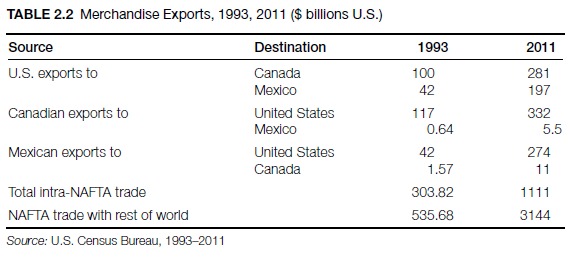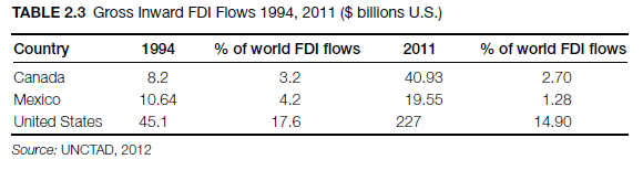 Since NAFTA, there has been a substantial growth in inward FDI in member countries (Weintraub, 2004) (Table 2.3).