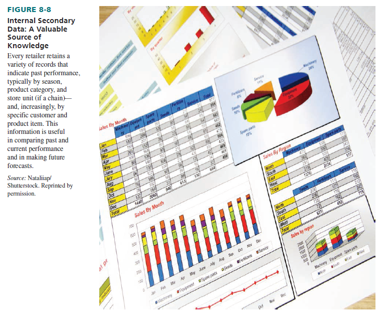 Internal secondary data are available within the company, sometimes from the data bank of a retail information system. Before searching for external secondary data or primary data, the retailer should look at information available inside the firm.
