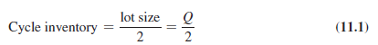 For a lot size of 1,000 units, Jean-Mart carries a cycle inventory of Q/2 = 500 pairs of jeans. From Equation 11.1, we see that cycle inventory is proportional to the lot size. A supply chain in which stages produce or purchase in larger lots has more cycle inventory than a supply chain in which stages produce and purchase in smaller lots. For example, if a competing department store with the same demand purchases in lot sizes of 200 pairs of jeans, it will carry a cycle inventory of only 100 pairs of jeans.