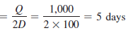 For lot sizes of 1,000 pairs of jeans and daily demand of 100 pairs of jeans, we obtain