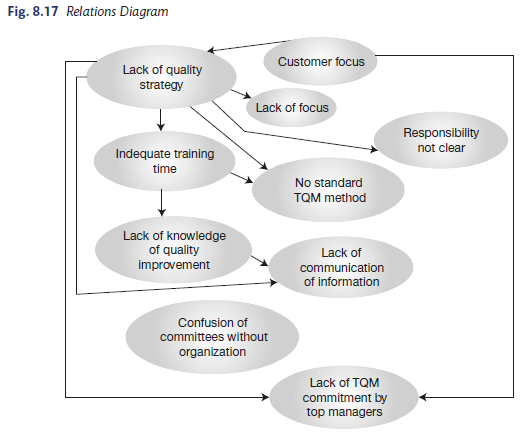 Example: Figure 8.17 represents the results of a team brainstorming session that identified 10 major issues involved in developing an organization’s quality plan.