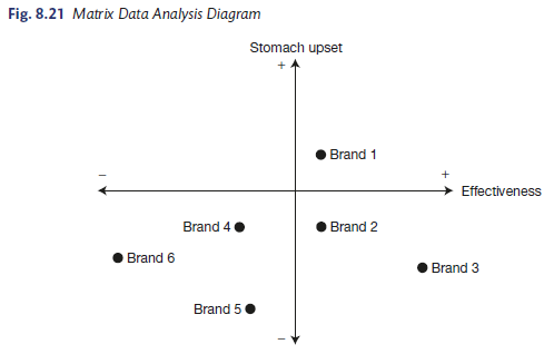 Example: Figure 8.21 provides the results of an investigation into the effectiveness of different brands of medication used to cure an upset stomach. Brands 2 and 3 are effective and do not cause an upset stomach, whereas brand 1 is effective but causes an upset stomach. Brands 4, 5 and 6 are not effective.