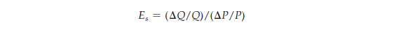 The price elasticity of market supply measures the sensitivity of industry output to market price. The elasticity of supply Es is the percentage change in quantity supplied Q in response to a 1-percent change in price P: