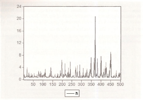 Since the CM statistic (62.159) is significant, we reject the null hypothesis that there is no first- order ARCH effects. Note that the LM statistic in EViews is calculated as LM = TxR2 = 499×0.124568=62.16. Furthermore, the F- and t-statistics (62.16 = 8.40952) corroborate the presence of first order ARCH effects.