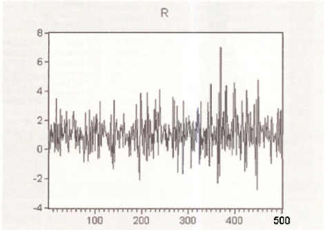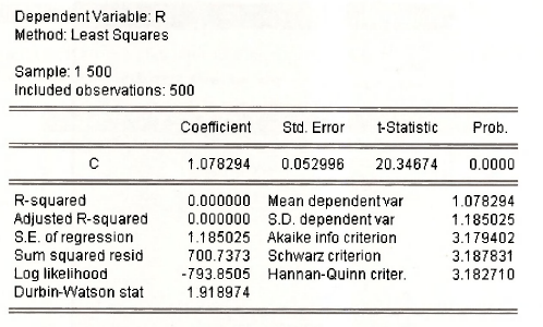 The regression residuals are obtained from the mean equation. The regression of returns on a constant term is shown below.