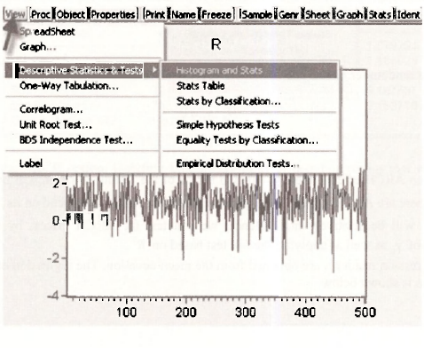 To generate the histogram, select View/ Descriptive Statistics & Tests/ Histogram and Stats.