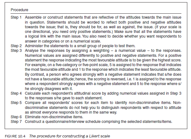 Figure 10.4 shows the procedure used in constructing a Likert scale.