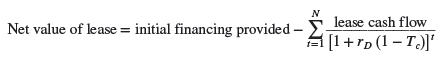 where N is the length of the lease. Initial financing provided equals the cost of the leased asset minus any immediate lease payment or other cash outflow attributable to the lease.[4]