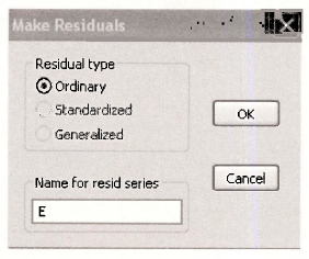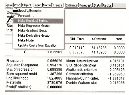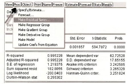 Next click Proc and select Make Residual Series from the drop-down menu to generate the residuals.