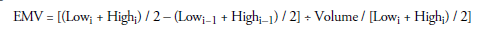 The result is a figure that measures the effect of volume on the daily range. The EMV is usually smoothed using a moving average because it can be erratic from day to day.