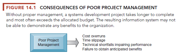 As illustrated in Figure 14.1, a systems development project without proper management will most likely suffer these consequences:
