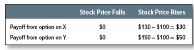 Suppose that you are offered a call option on each of these stocks with an exercise price of $100. The following table compares the possible payoffs from these options:
