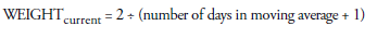 The general formula for determining the weight of the current day’s data in the exponential moving average calculation is as follows: