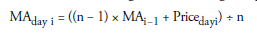 Welles Wilder (1978) used another simple method to calculate a moving average that weights the most recent number more heavily. The formula for calculating Wilder’s moving average is as follows: