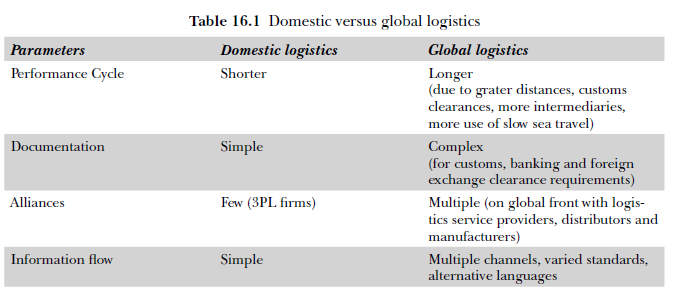 As a consequence of globalization, managing logistics at the global level poses a challenge of considerable complexity. The complexity of this challenge varies with the nature of business and the operational environment. To face the logistical challenges there is no single standard solu­tion available. The individual companies will have to understand both strategic and management issues to clearly know the implications that globalization of their business will have on logistics (see Table 16.1) operation of their company.